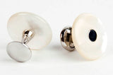 More durable for being crafted more sturdier and showing off a Mother of Pear top, these luxury front and back collar studs are the best a man can get! Available as a set of one long front and one short back silver stud.