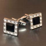 Square Silver Cufflinks with Jet & Crystal