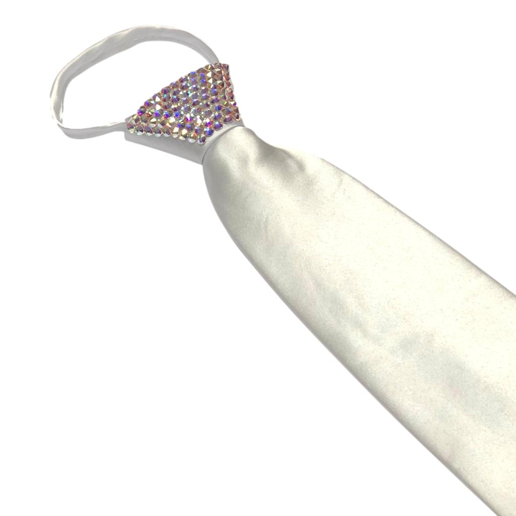 White Zipper Tie stoned by 20SS Crystal Glass Rhinestones