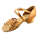 Galex 3013 Lilia, Block Heel, Tan Satin, Girls' Latin Dance Shoes