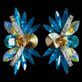 Euro Glam hand made earrings stoned by Blue Zircon, Metallic Sunshine and Citrine AB Rhinestones elements. They will be the great addition to woman's ballroom dance-wear and looks perfect on the dancing floor. Could be used for ballroom and latin competition dancing, showcases or social events.