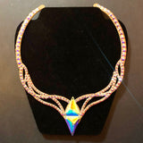 This Euro Glam necklace has been created with Rhinestone elements.The necklace has a snap closure at the sides.